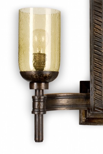 Viele Details sind erst auf den zweiten Blick erkennbar, ergeben aber im Ganzen die Harmonie dieser handgeschmiedeten Wandlampe.